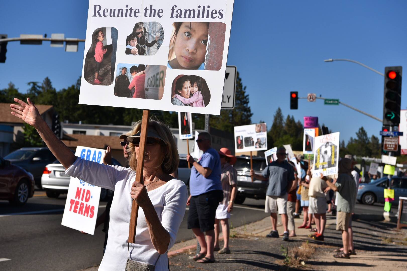 Some 50 people gathered Thursday in Paradise to protest the separation of children from their migrant parents on the U.S.-Mexico border. They'll reconvene at 5 p.m. Monday at Pearson and Skyway to call for family reunification. Such protests are spreading across the nation.