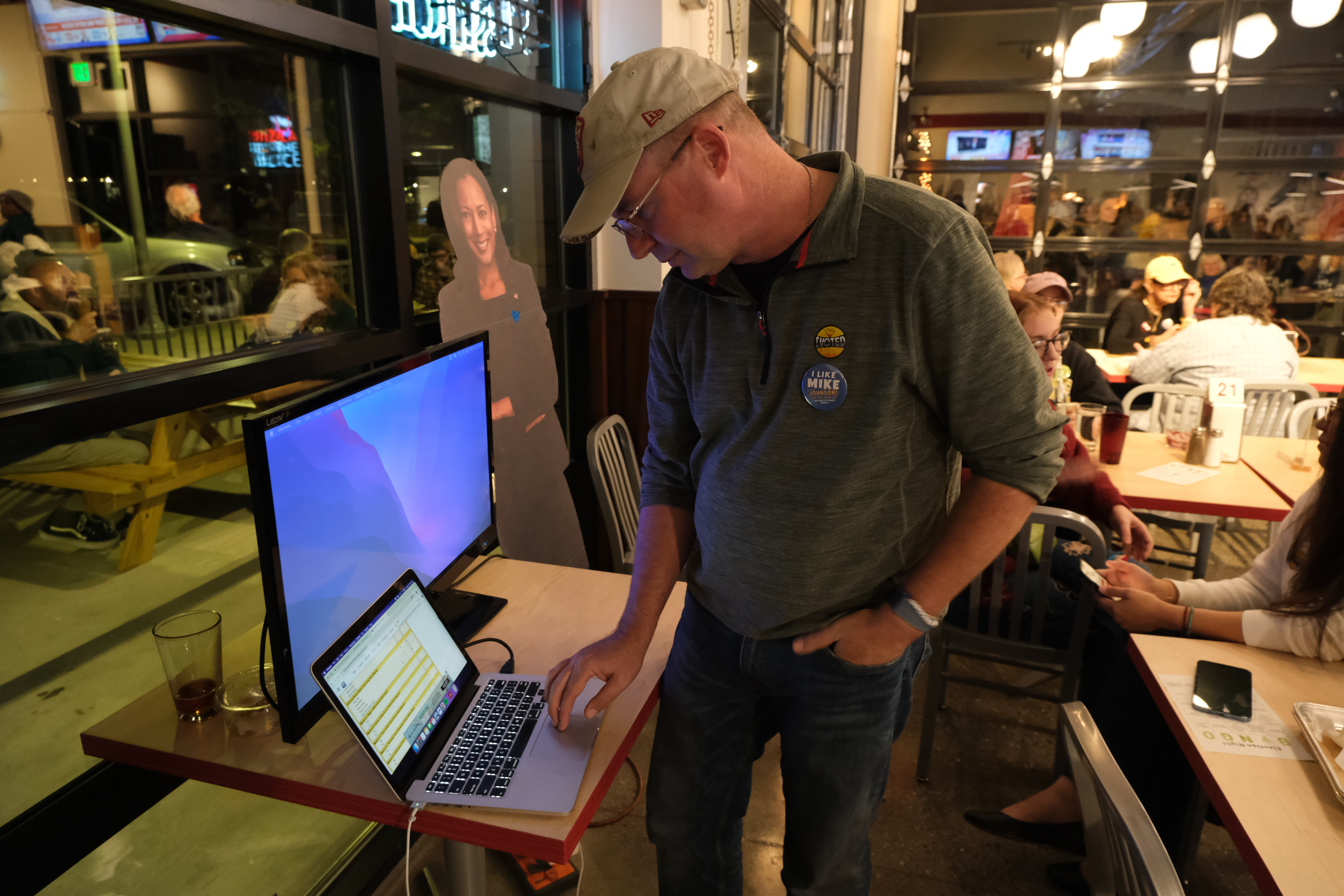 watchparty admin | November 7, 2024 ← Return to Key race in City Council election narrows to seven-vote difference ‹ › photo by Yucheng Tang Candidate Mike Johnson checks for vote counts at the watch party.