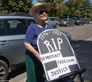 The Chico protest – a one-hour event beginning at 11 a.m. – attracted a crowd of mostly senior citizens, many of whom hadn’t attended demonstrations in years, if ever. A protest outside Social Security in Oroville drew another 70 people.