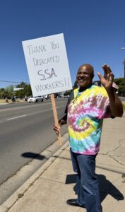 Those participating in the Chico event today were invited to write notes of appreciation to Social Security employees inside the building. The notes were dropped in a basket that was delivered to a security guard inside.