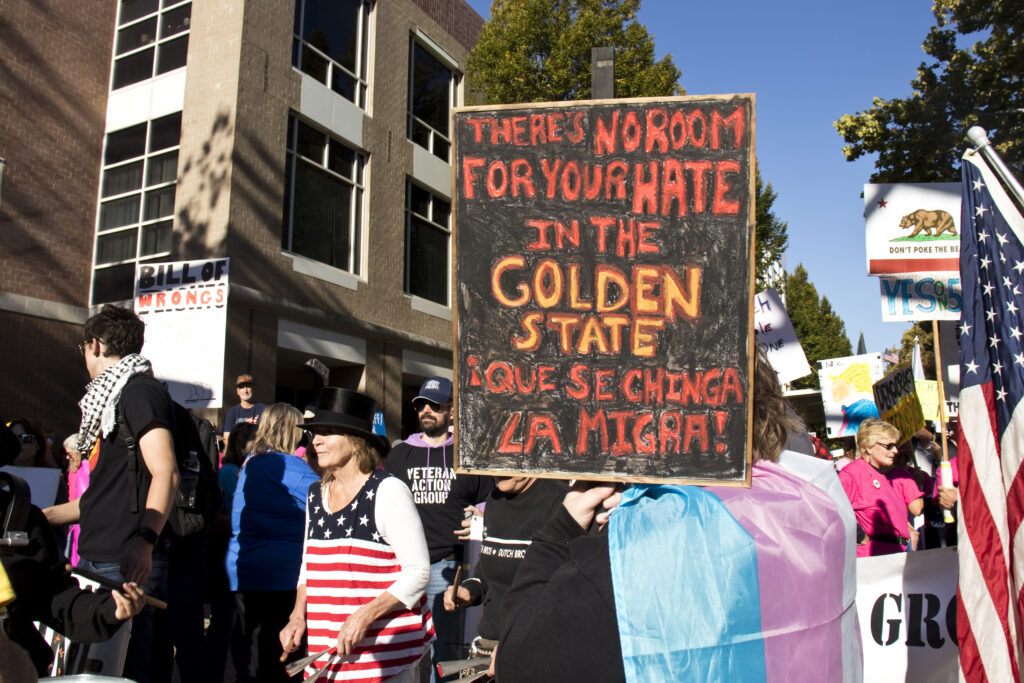 “We’re out here today protesting to hopefully demonstrate to our local authorities as well as our national government that we appreciate our Constitutional rights and we will defend them,” said 19-year-old Chico State student Angelino Martinez, who came with cardboard signs and plenty of enthusiasm.
